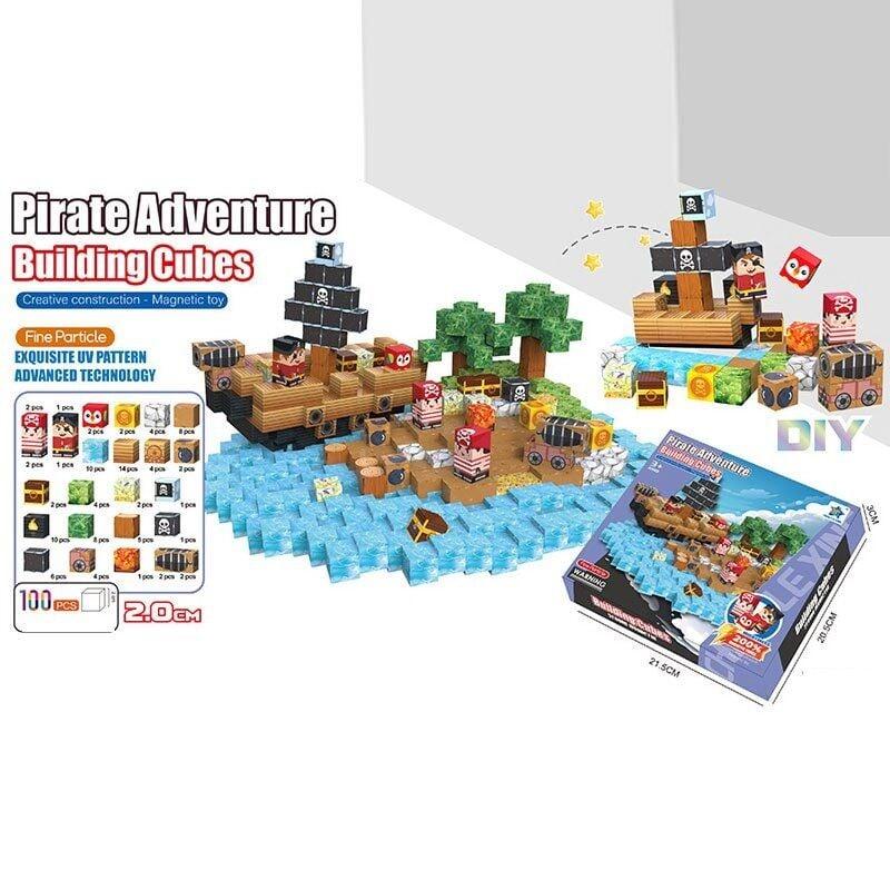 Конструктор 100 дет, магнитный пираты, кубик 2 на 2 см, в коробке