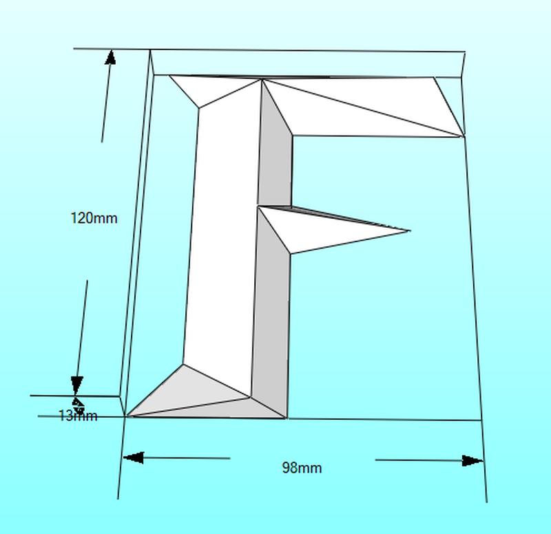 PaperKhan объёмная буква F 3D фигура паперкрафт papercraft имя название азбука алфавит реклама вывеска витрина набор для творчества подарок набор для самостоятельной сборки (цвет белый) БЕСПЛАТНАЯ ДОСТАВКА в отделения Новой Почты ОПЛАЧЕННЫХ НА НАШ РАСЧЕТНЫЙ СЧЁТ заказов на суму что превышает 500 грн. ## БЕСПЛАТНАЯ ДОСТАВКА в отделения Новой Почты ОПЛАЧЕННЫХ НА НАШ РАСЧЕТНЫЙ СЧЁТ заказов на суму что превышает 500 грн. БОЛЬШЕ ФИГУР И МОДЕЛЕЙ ПО ССЫЛКЕ https://paperkhan.********************************** Мы творческая студия и магазин полигональных фигур PaperKhan. Разрабатываем и производим конструкторы из картона как из имеющегося ассортимента так и под заказ. Сейчас паперкрафт модели можно встретить в интерьерах кафе, ресторанов и кафе. Также готовые работы украсят интерьер любой комнаты в вашем доме, а особенно детскую комнату. Стоит отметить, что паперкрафт будет интересен как для детей, так и для взрослых. Модели собираются из предварительно вырезанных и изогнутых картонных деталей. В качестве основания используется белый картон. Все модели поставляются в виде готовых наборов с напечатанными выкройками (деталями), которые моделисту необходимо вырезать и склеить. Для сборки Вам понадобится: - обычные ножницы для бумаги - (так же кому-то можно удобнее работать с канцелярским ножом) - любая ровная рабочая поверхность - развертка из картона - идет в наборе - несколько часов свободного времени - клей. Комплект поставки: - пластикова папка разверток (выкроек) выполненных на специальном белом плотном картоне; - инструкция по самостоятельной сборке. В наличии другие модели животных и техники. вопросы и предложения в сообщении Картон белый белоснежный. Укрпочта НоваяПочта Jastin Rozetka Meest