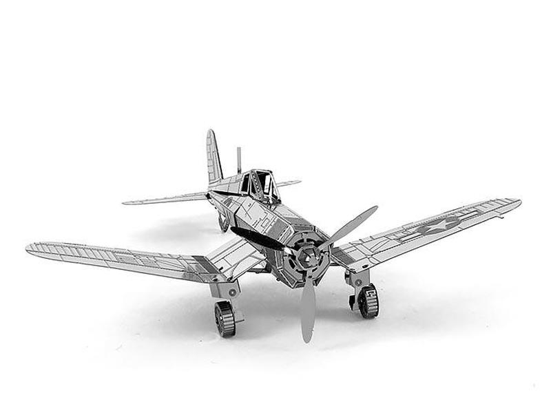 "Характеристики" Уничтожитель F4U Corsair - одна из самых интересных моделей в истории авиационной инженерии. Его отличительной чертой является, что состоят крылья и необычный для своего времени внешний вид. Металлический 3D пазл в точности копирует мельчайшие детали этого странного самолета. Благодаря лазерной нарезке стальные детали конструктора плотно прилегают друг к другу, а крепления в виде металлических усиков позволяют соединить их незаметно, создавая видимость целостности конструкции. Такой сувенир способен порадовать любителей сложных конструкций, ведущих авиаторов и детей любого возраста.