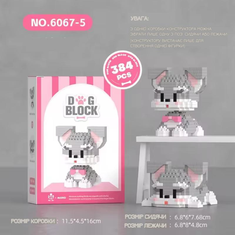 Конструктор блочный детский пес песик собака собачка 2 в 1 шнауцер