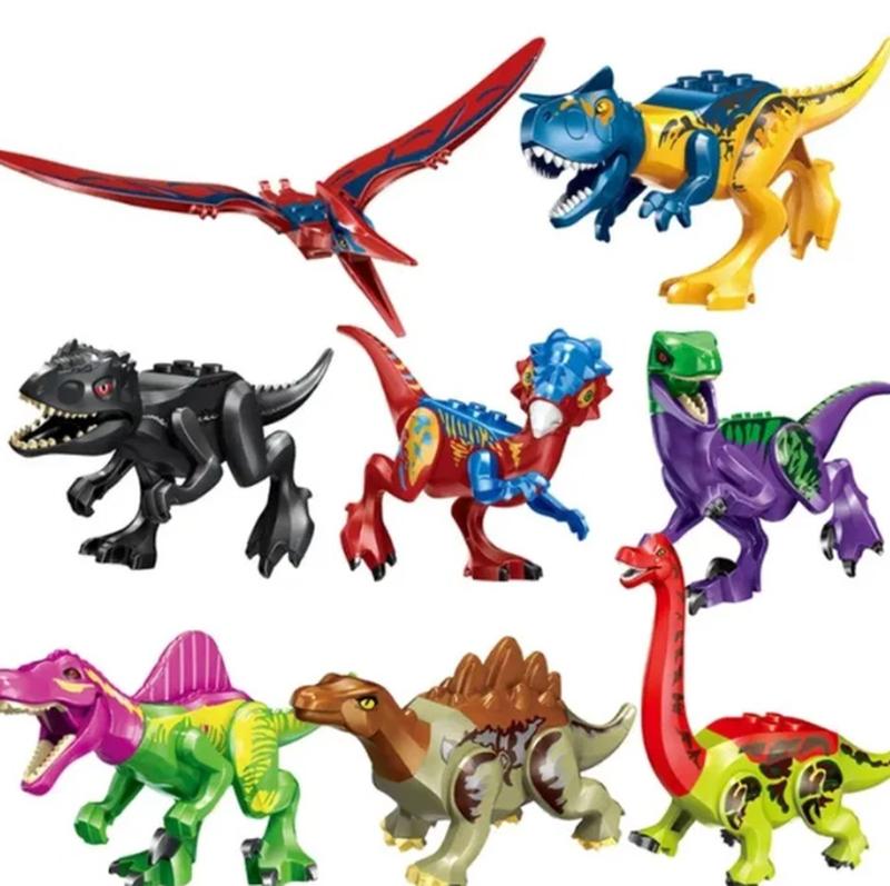 В набор входит 8 динозавров. У каждого динозавра двигаются лапы и голова, а у некоторых крылья, челюсть и хвост. На спину динозавра можно уложить фигурку лего. Размеры 9-14 см. Полностью совместимы с LEGO
