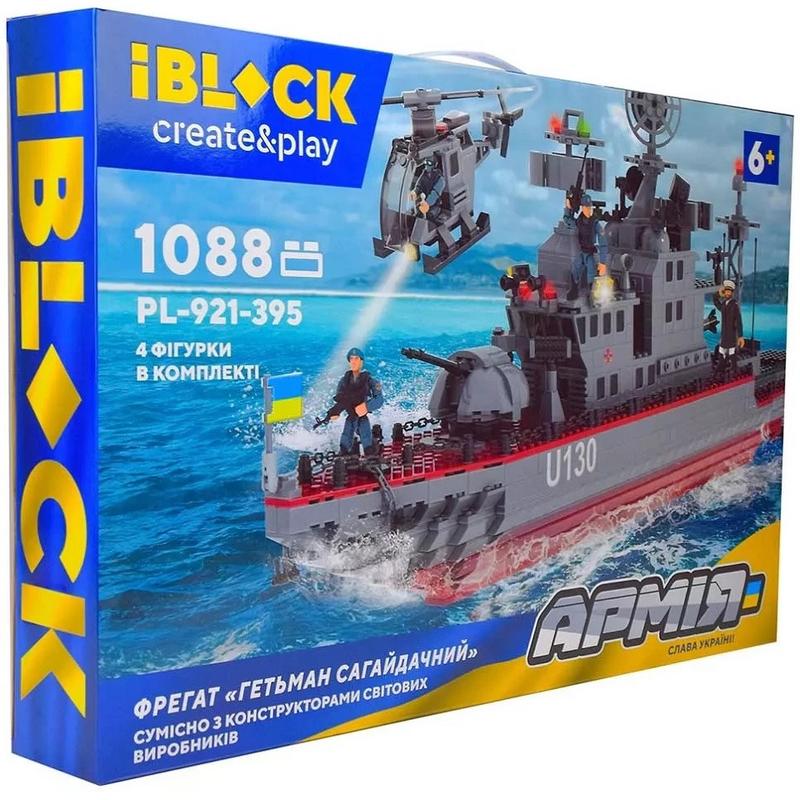 Конструктор детский iblock фрегат "гетьман сагайдачный" 1088 деталей