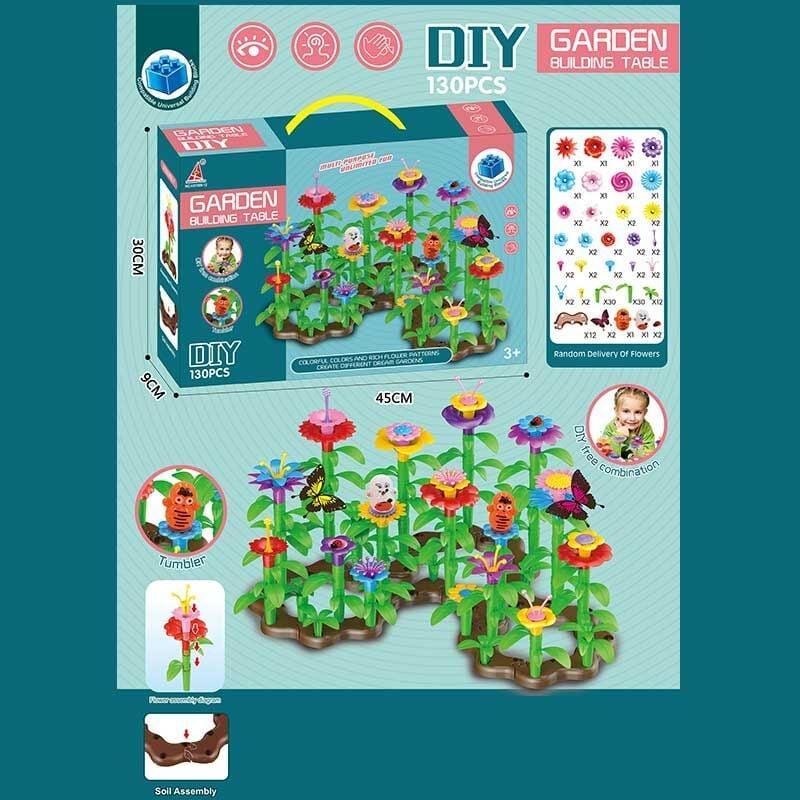 Створіть власний квітковий сад! Вам в нагоді стане цей яскравий набір, який дозволяє дітям вигадувати власні квіткові композиції. Гра з такою забавкою стимулює уяву та креативність, а також допомагає розвивати дрібну моторику та координацію рухів. Віддайтеся веселощам конструювання та перетворіть кожен момент у захопливий досвід творчості та навчання! Особливості: - 130 деталей; - ігрові елементи виконані у вигляді барвистих квіточок; - деталі, що імітують землю; - аксесуари: метелики, неваляйки, сонечка; - простий процес збору; - виготовлено з якісного пластику, який є безпечним для здоров'я дитини.