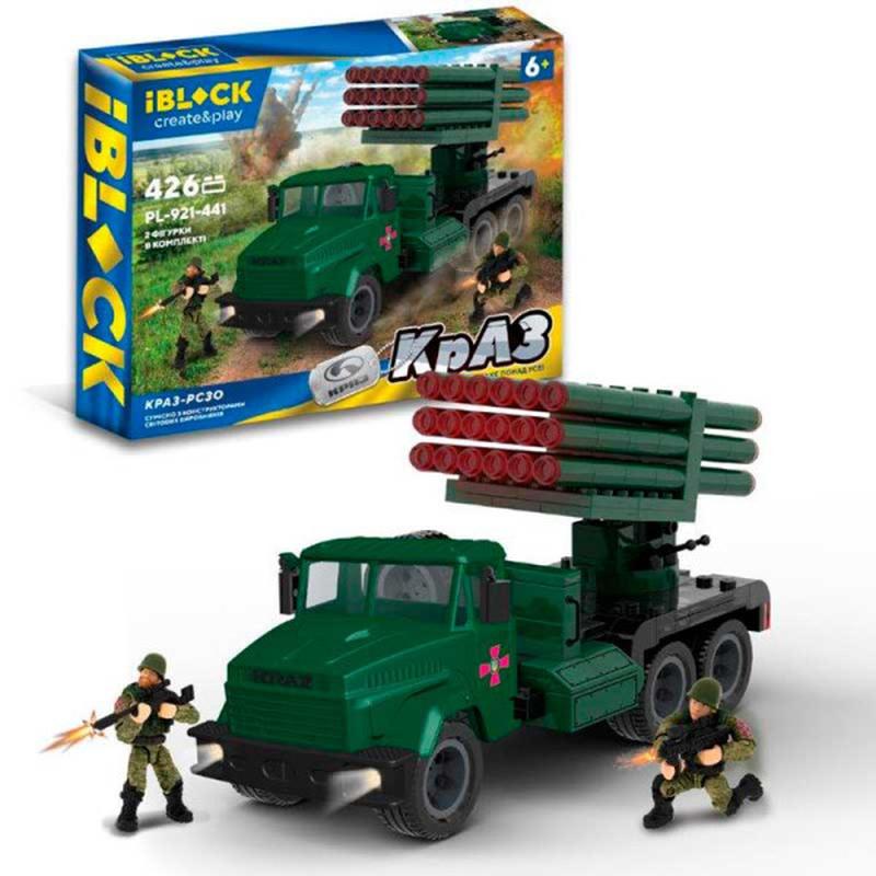 Конструктор iblock арт. pl-921-441 (12шт) армия, краз рсзо 426дет., 2 фигур