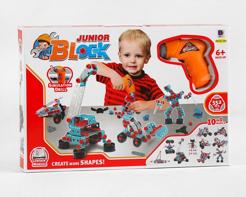 Конструктор 661-302, 552 деталі, шуруповерт на батарейках, в коробці