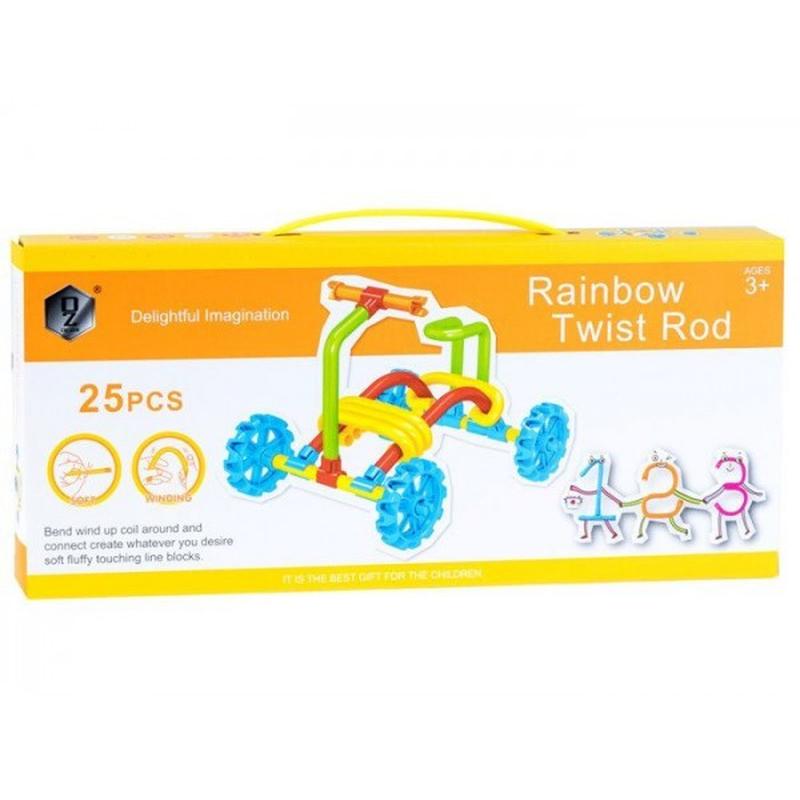 Набір барвисті, пінопластові, гнучкі палички для створення різних фігур. Палички приємні на дотик. Їх можна як завгодно гнути та плести, створюючи різні візерунки. Вони відмінно стимулюють уяву та творчі здібності дітей з трирічного віку. Палички чудово тримають форму, і після завершення гри ви легко зможете відновити їхню початкову форму. Інструкція, що входить у набір, допоможе створити багато цікавих дизайнів. Набір містить: - 11 гнучких паличок - 4 пластикові колеса - шплінти - барвистий посібник з картинками