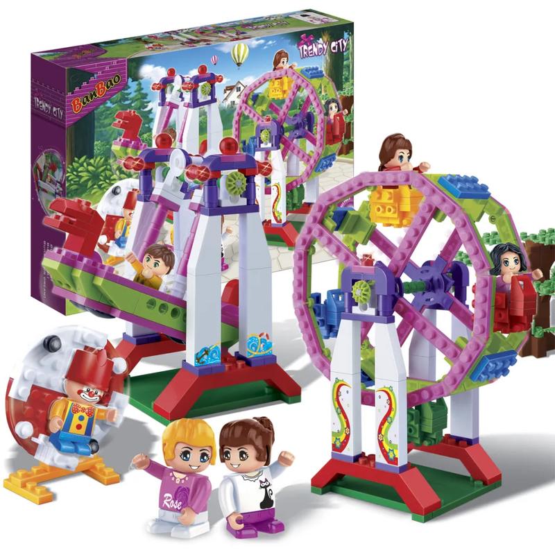 Конструктор Banbao Парк атракционов привлечет внимание вашей малышки. Он содержит 401 пластиковый элемент, из которых ребенок без труда сможет собрать красочный и яркий парк развлечений, с вращающимся колесом обозрения, веселыми качелями в виде корабля и аттракцион с веселым клоуном. Также набор включает в себя 6 фигурок веселых человечков -- посетителей и работников парка развлечений, а также подробную инструкцию по сборке. Ребенок сможет часами играть с этим конструктором, придумывая разные истории и комбинируя детали. Конструктор сочетается с другими наборами BanBao из серии Trendy City. Игры с конструкторами помогут ребенку развить воображение, внимательность, пространственное мышление и творческие способности. Особенности конструктора Banbao Парк атракционов: количество деталей: 401; размер упаковки: 40х30х7 см; возраст: от 6 до 14 лет; материал: пластмасса