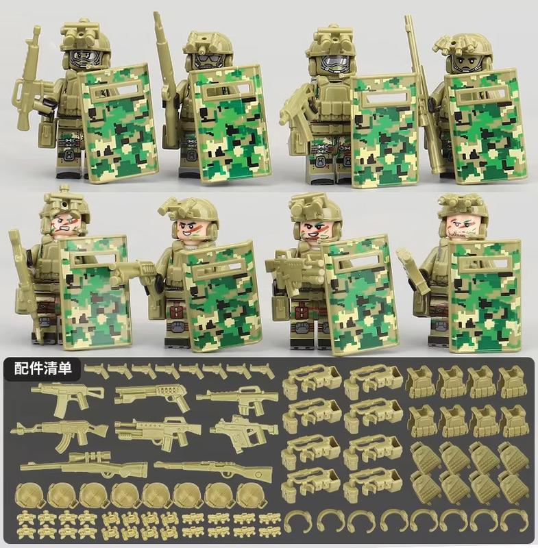 Набор состоит из 8 фигурок, как на фото+оружие и аксессуары. Все лего фигурки в наборе аналоговые. Наборы новые, фигурки запечатаны в отдельные пакетики. Полностью совместимы с другими конструкторами lego. Изготовлены из качественных материалов. Поставляется в упаковке без коробки