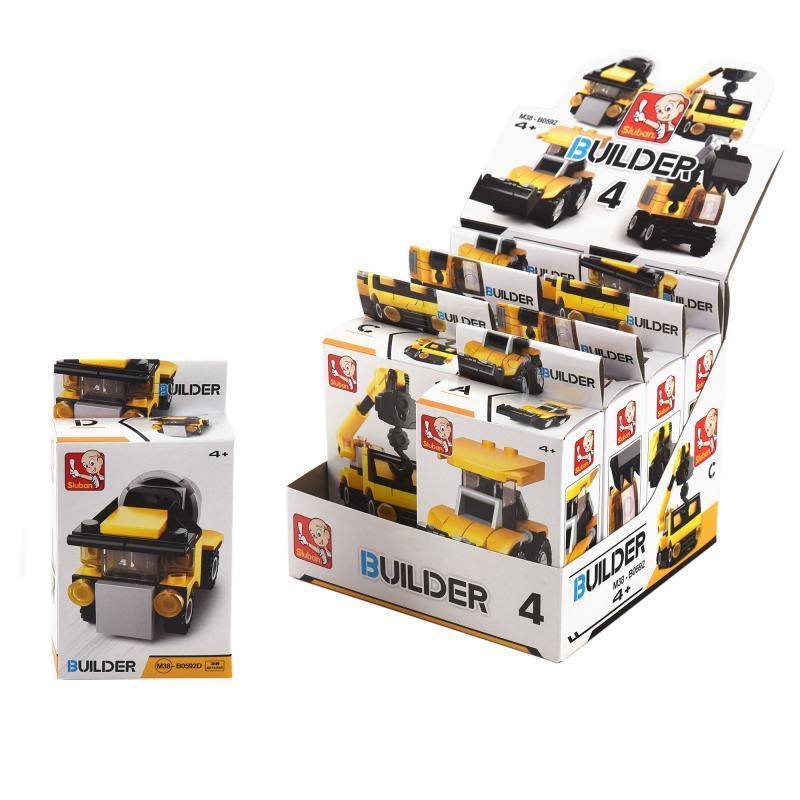 Конструктор SLUBAN Builder. Від 38 деталей, 4 види. Вік - від 4 років. Матеріал - пластик. Упаковка - дисплей, 8 шт. Розмір - 16х14,5х16,5 см.