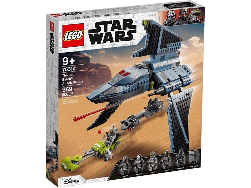 Детям понравится играть в роли клонов Отряда Девяносто Девять с этой моделью штурмового шаттла Грязной банды из кубиков LEGO(75314) из фильма «Звёздные войны: Бракованная партия». Модель имеет большие крылья, которые можно перемещать вверх и вниз, чтобы активировать режим приземления или полета. На корабле также есть 2 подпружиненных стрелка, открывающаяся кабина для 2 минифигурок LEGO, задняя каюта с местом для еще 2 минифигурок LEGO и помещение для хранения оружия. Потяните центральный «плавник» на спине корабля, чтобы получить доступ к его внутренней части. Захватывающие приключения В набор входят пять минифигурок-клонов LEGO, впервые выпущенных в августе 2021 года: Тех, Эхо, Охотник, Саботажник и Перекрестье. В набор также входит фигурка дроида LEGO Gonk, крутое оружие и два сборных спидера для творческой игры. В комплект также входит подробная инструкция, облегчающая сборку.