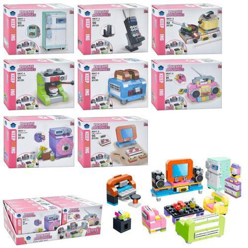 Конструктор Меблі, 8 видів. Від 91 деталі. Матеріал - пластик. Упаковка - дисплей, 8 шт. Розмір - 39х14х19 см.