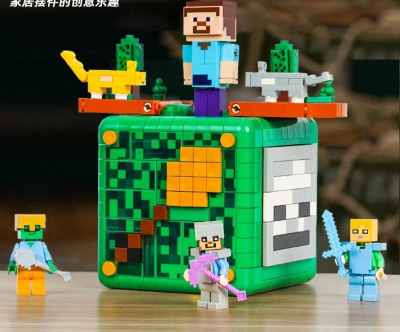 При нажатии на кнопку кубик открывается и поднимается Криптер.