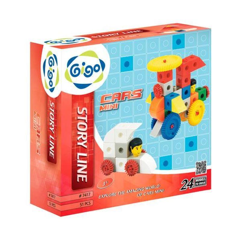 Из уникальных кубиков и призм можно создавать объемные фигуры. Каждый кубик имеет размер 2 х 2 см, один выступ-штифт и пять отверстий для соединений. Количество комбинаций соединений кубиков между собой и с другими элементами огромно – это буквально миллионы вариантов. Используя 51 деталь, дети могут собрать 24 модели машин. Каждый набор кубиков Gigo снабжен инструкцией по сборке. Вы можете вместе с ребенком начать со сборки моделей, описанных в инструкции. Когда ребенок познакомится с кубиками Gigo поближе, вы будете поражены его невероятной творческой силой.
