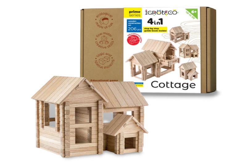 Дерев'яний тематичний конструктор "котедж" 900323 4в1 206 деталей 33*24*8 см igroteco