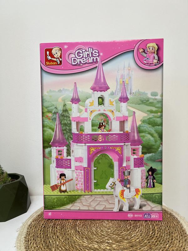 Розмір упаковки: 28,5х42,5х6,5 см Конструктор SLUBAN M38-B0153 "Рожева мрія": замок принцеси, фігурки, 271дет.