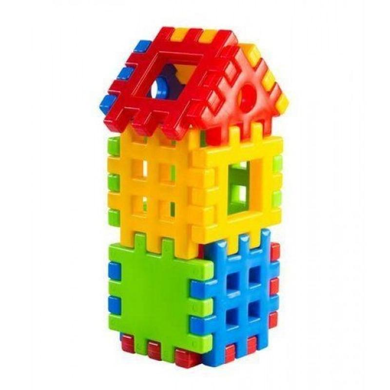 Игрушка-конструктор "Поеднайко" (Поєднайко), 13 элементов. Соединяя яркие детали, можно построить домик или другие креативные конструкции. Размер элемента - 11 х 11 см.