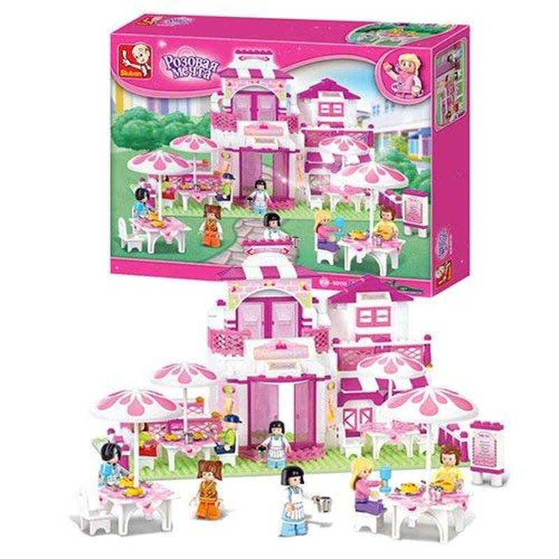 Конструктор SLUBAN Кафе. 306 деталей, фігурки, меблі. Матеріал - пластик. Вік - від 6 років. Упаковка - коробка. Розмір - 42,5х6х33 см.