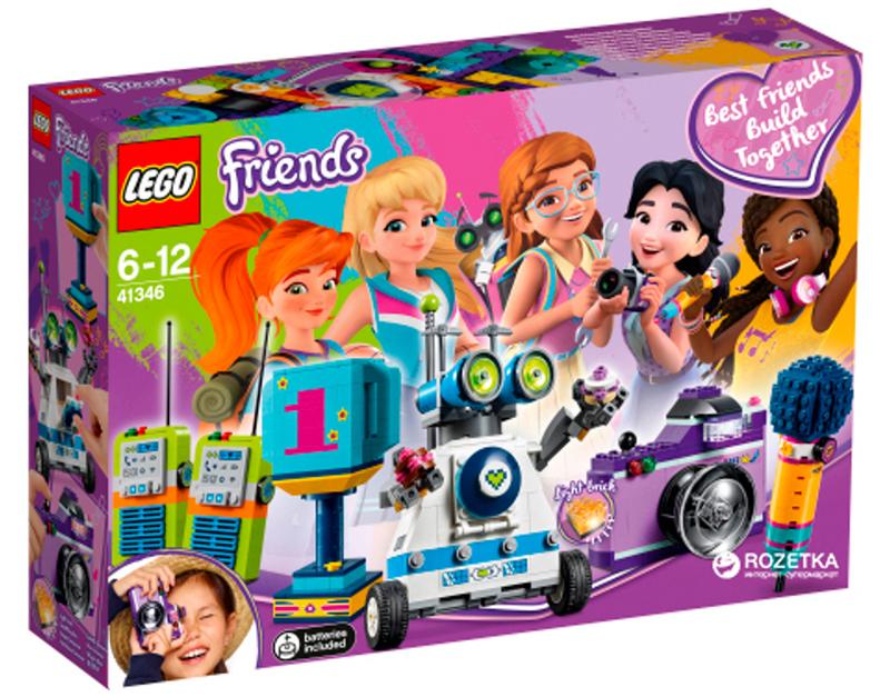 Веселись, создавая аксессуары LEGO Friends в натуральную величину, вместе с друзьями будь в центре событий Хартлейк-Сити. Каждая модель в этом удивительном наборе «Шкатулка дружбы» (41346) LEGO Friends представляет одну из подружек из Хартлейк-Сити. Пой в микрофон, как Андреа, создавай друга-робота, как Оливия, возьми пару раций и отправляйся в путешествие с Мией, выиграй приз в спортивных соревнованиях, как Стефани, или сделай фотографии в стиле Эммы. В наборе достаточно кубиков, чтобы построить все 5 моделей аксессуаров одновременно! Стань одной из твоих любимых подружек Хартлейк-Сити с пятью аксессуарами LEGO в натуральную величину! Мир наборов LEGO Friends обязательно нравится вашему ребенку. Эта серия сочетает классическое конструирование LEGO с возможностью разыгрывать сценки из повседневной жизни. Основой этих игровых наборов стала тема дружбы пяти девушек, каждая из которых имеет свою неповторимую индивидуальность. Они живут в красивом городе, где много симпатичных животных, о которых можно заботиться, а также магазины и дома. Наборы содержат много аксессуаров и интересных деталей, которые делают игру более увлекательной и стимулируют развитие творческих способностей. С наборами LEGO Friends можно часами играть и весело проводить время. Веселись, создавая аксессуары LEGO Friends в натуральную величину, вместе с друзьями будь в центре событий Хартлейк-Сити. Каждая модель в этом удивительном наборе «Шкатулка дружбы» LEGO Friends представляет одну из подружек из Хартлейк-Сити. Пой в микрофон, как Андреа, создавай друга-робота, как Оливия, возьми пару раций и отправляйся в путешествие с Мией, выиграй приз в спортивных соревнованиях, как Стефани, или сделай фотографии в стиле Эммы. В наборе достаточно кубиков, чтобы построить все 5 моделей аксессуаров одновременно! Размеры в собранном виде: Микрофон: 14 см -- высота, 5 см -- ширина, 5 см -- глубина. Радиоприемник: 15 см -- высота, 4 см -- ширина. Камера 8 см -- высота, 10 см -- ширина, 7 см -- глубина. Трофей: 12 см -- высота, 7 см -- ширина, 4 см -- глубина. Робот: 16 см -- высота, 8 см -- ширина, 8 см -- глубина. Батарейки: 2 шт. LR41, поставляются в комплекте