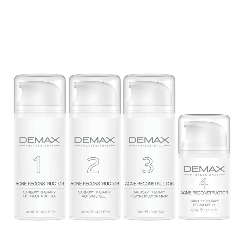 Для людей, страдающих от акне I-II степени, такой реконструктор станет настоящей находкой. Профессиональная серия, состоящая из 4 уходовых шагов, обеспечит уменьшение купероза и розацеа. Выровняется неровный цвет лица, нормализуется работа сальных желез. При комплексном применении кислотного геля, корректора, активатора, маски реконструктора, а также коллагенового крема можно будет добиться активного обновления клеток, уменьшения появления кожной секреции. Серия направлена на полноценное очищение кожи, устранение возможных воспалительных процессов. В частности, происходит рассасывание застойных поствоспалительных пятен. Улучшается текстура, а также внешний, качественный вид кожи. В комплексе происходит коррекция признаков фотостарения кожи. Уникальная методика восстановления внутритканевого дыхания и функций клеток кожи направленного действия для коррекции жирной и проблемной кожи. Обеспечивает очищение устьев сальных протоков, сужение пор, активное обновление клеток и выравнивание цвета кожи. Акне-реконструктор карбокситерапия - эффективна при куперозе, акне и постакне. STEP 1: КИСЛОТНЫЙ ГЕЛЬ-КОРРЕКТОР, рН 3,4 Кислородный гель на основе специально подобранных кислот для жирной кожи, оказывает очищающее, антиоксидантное и противовоспалительное действие. Во время процедуры нормализуется отток кожного секрета, сужаются поры. Корректирует проявления купероза и розацеа. STEP 2: ГЕЛЬ-АКТИВАТОР, рН 8,9 Активирующий гель запускает каскад реакций для выделения углекислого газа и обеспечивает насыщение тканей кожи кислородом. Усиливает микроциркуляцию, обеспечивает эффективную оксигенацию. STEP 3: МАСКА-РЕКОНСТРУКТОР, рН 5,8 Насыщенная маска на основе экстракта улитки и ферментов для коррекции проблем, свойственных жирной коже: себорея, акне, постакне. Подавляет патогенную микрофлору и препятствует ее образованию, восстанавливает защитную водно- липидную систему кожи STEP 4: КОЛЛАГЕНОВЫЙ САНБЛОК SPF 25, рН 6,0 Коллагеновый защитный крем обеспечивает восстановление липидного слоя, эффект увлажнения и насыщения кожи витаминами. Сочетание инновационных компонентов восстанавливает эластичность и тонус, глубоко восстанавливает ткани STEP 1: Нанести препарат віяловим пензлем на обличчя, шию та зону декольте. Час експозиції - 3 хвилини. Не змиваючи препарат, приступити до наступного кроку STEP 2: Нанести гель віяловим пензлем поверх STEP 1, розподілити по оброблюваній зоні. Час експозиції - 15 хвилин. Змити водою, використовуючи спонжі STEP 3: Нанести маску товстим шаром на обличчя, шию та зону декольте. Виконати лімфодренажний масаж. Час експозиції - 10-15 хвилин. Змити водою, використовуючи спонжі STEP 4: Нанести крем як завершальний етап процедури. Вмасажувати до повного вбирання