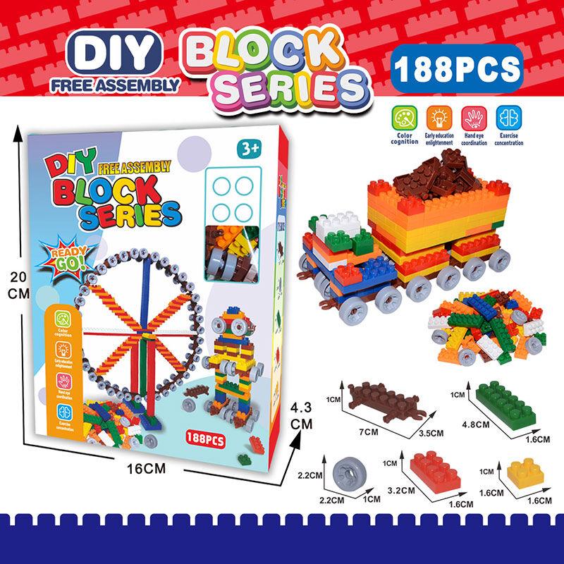Универсальная детская игрушка, которая понравится как мальчикам, так и девочкам. Набор состоит из 188 элементов, которые отличаются по размеру, цвету и форме. Составляя разные конструкции, ребенок развивает координацию движений, логическое мышление и мелкую моторику рук. Особенности: - включает 188 блочных элементов разных форм и размеров; - выполнен из прочного первичного пластика; - цветная окраска; - размер упаковки 20*18*4см; – способствует развитию логического мышления и мелкой моторики рук; - содержит мелкие детали, не рекомендуется детям до 3 лет.