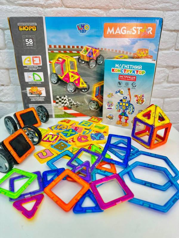 Конструктор🛞является одной из самых любимых игрушек детей и родителей👨👩👧👦 Однако классические конструкторы уже стали привычными и не такими интересными😒Представляем Вашему вниманию новую разработку - Магнитный конструктор🤩 Особенность такого конструктора заключается в том, что детали крепятся друг с другом с помощью магнитов🧲 которые помещены в пластиковый корпус🚗 Вращаясь, в зависимости от необходимого полюса, магнитные детали всегда притягиваются друг к другу, что позволяет создавать много разнообразных конструкций🏠 Данный набор состоит из 58-ти деталей, английской алфавитки🔠 наклеек🔖и колес для моделирования авто🚙 С помощью данного конструктора ребенок развивает пространственное и абстрактное мышление🧠мелкую моторику рук🤏проявляет воображение и фантазию💭