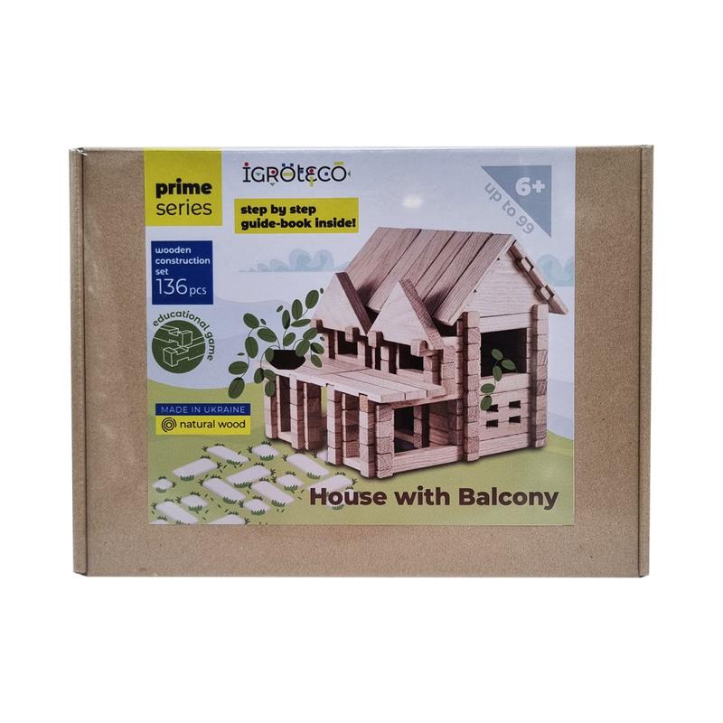 Деревянный конструктор "домик с балконом" igroteco 900248, 136 деталей