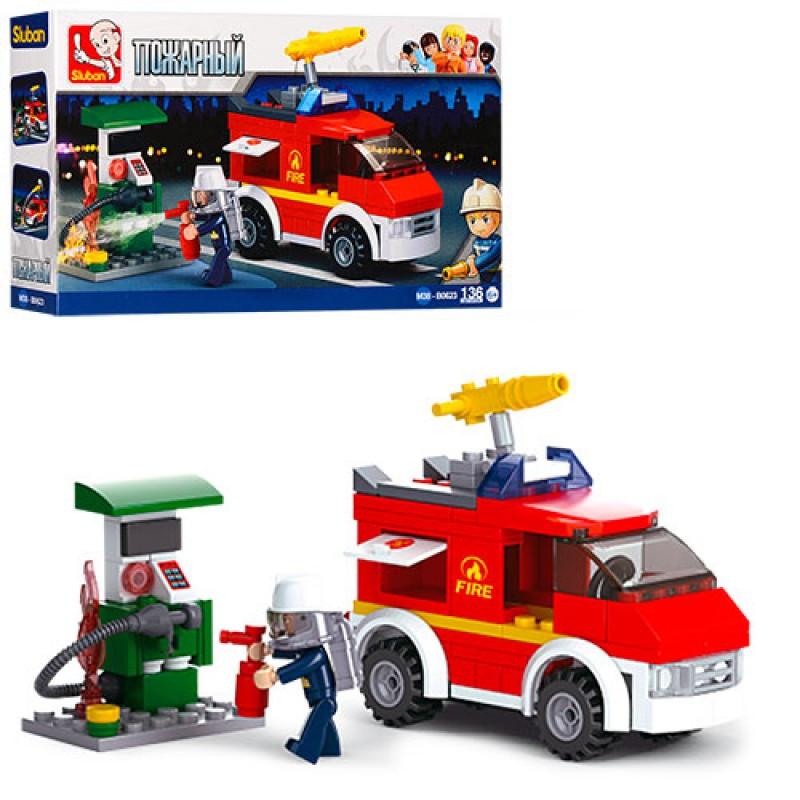 Конструктор SLUBAN M38-B0623 "Fire": машина, заправка, фігурка, 136 дет., 24-14-4,5см Бренд Sluban Вид транспорту Службовий транспорт Тематика Пожежники Кількість деталей 136 Матеріал пластик Рекомендований вік 6+ Вид конструктора блочний