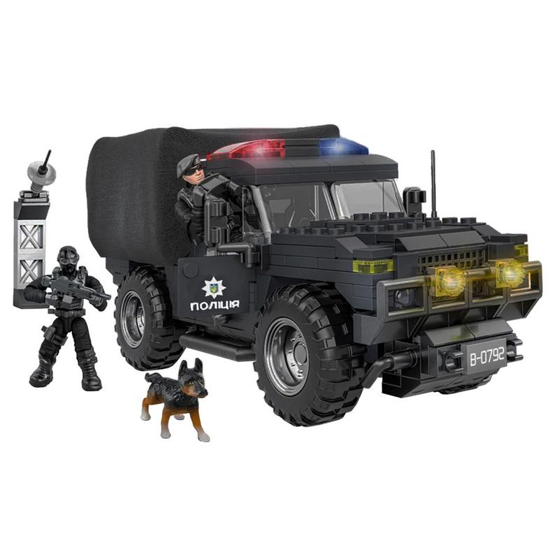Лучший способ развить фантазию малыша, его творческие способности и просто весело провести время в сюжетных играх – детские конструкторы. Детский конструктор из серии "Спецподразделение полиции" поможет Вашему малышу окунуться в бурный мир увлекательных приключений, преследование коварных бандитов и их задержание специальными подразделениями полиции! С помощью целого набора различных специальных полицейских средств этой серии, Ваш малыш может собрать не только джип спецназовцев, но и грузовик, катер и другую технику. Конструктор состоит из 469 деталей, фигурки в комплекте и элементы с принтами символики украинской полиции. Конструктор полностью совместим с конструкторами таких производителей LEGO, Brick, COBI, SLUBAN, LIGAO, BELA, KRE-O, Mega Blocks.