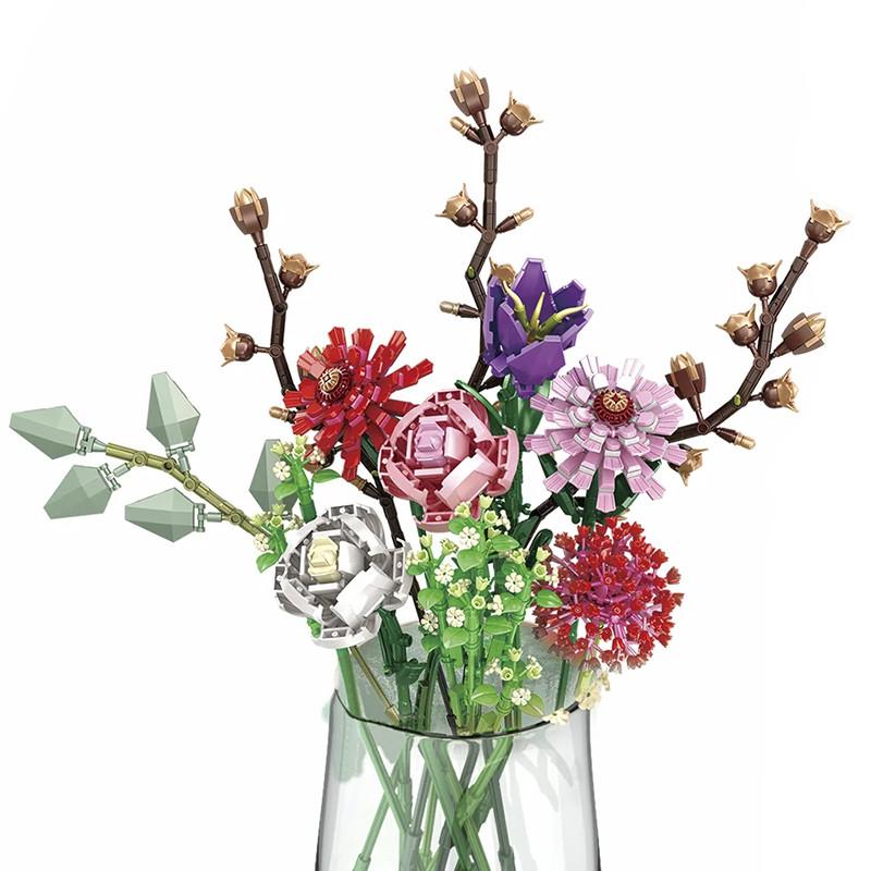 3d конструктор набор строительных блоков yz 655002 тюльпаны цинии лилии хризантемы 1237 де...