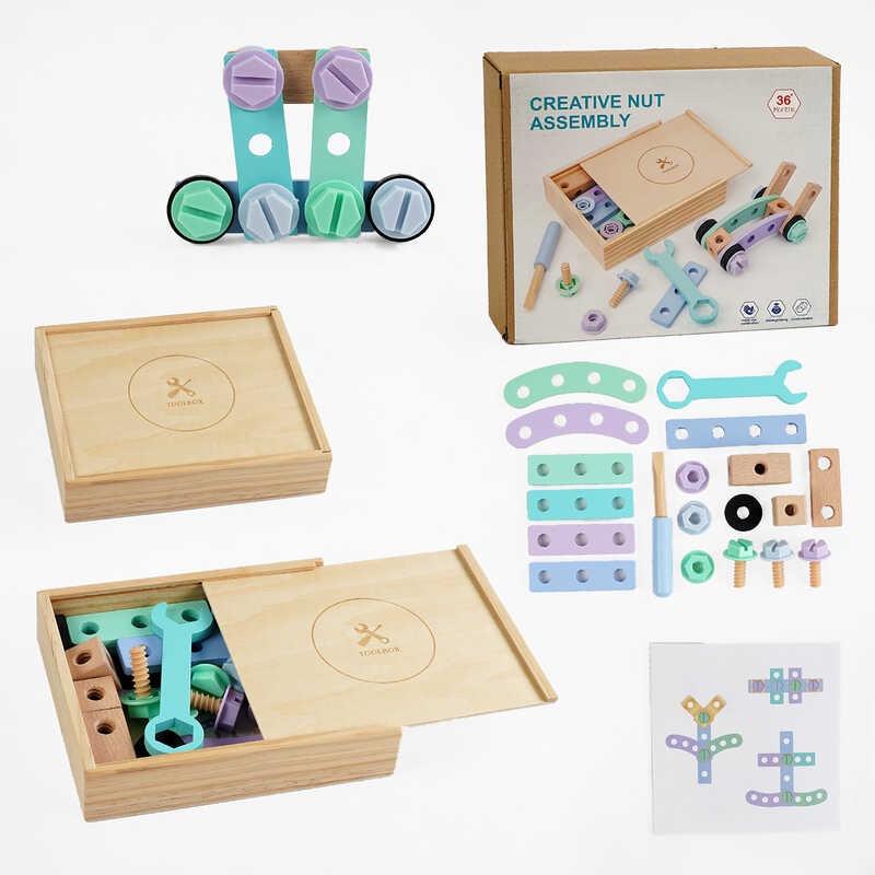 Конструктор 24 элемента, деревянный, отвертка, гаечный ключ