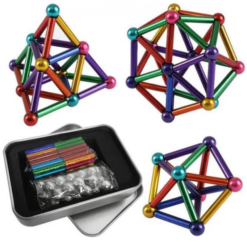 Магнитный конструктор -- это антистресс для взрослых или игрушка для детей школьного возраста. Складывая необычные фигуры, Вы непременно отвлечетесь, отпустите посторонние мысли и интересно проведёте время. Также Магнитный конструктор Neo - это отличный способ развивать мелкую моторику рук как детям (играть только под присмотром родителей, поскольку детали маленького размера). Мелкие шарики будут эффективным тренажёром для пальцев - играть не только интересно, но и полезно. Характеристики: - Тип: магнитный конструктор; - 36 магнитные палочки (диаметром 4 мм и длиной 23 мм.); - 28 магнитных шариков (диаметр каждой около 8 мм.); - Можно собирать самые разные фигуры; - Если добавить деталей, можно выстраивать гораздо более сложные конструкции; - Хороший вариант, размять пальцы, если работаете за компьютером; - Качество и долговечность; - Цвет: разноцветный. Комплектация: - Магнитные палочки - 36 шт.; - Магнитные бусины - 28 шт.; - Упаковка: металлическая коробка.