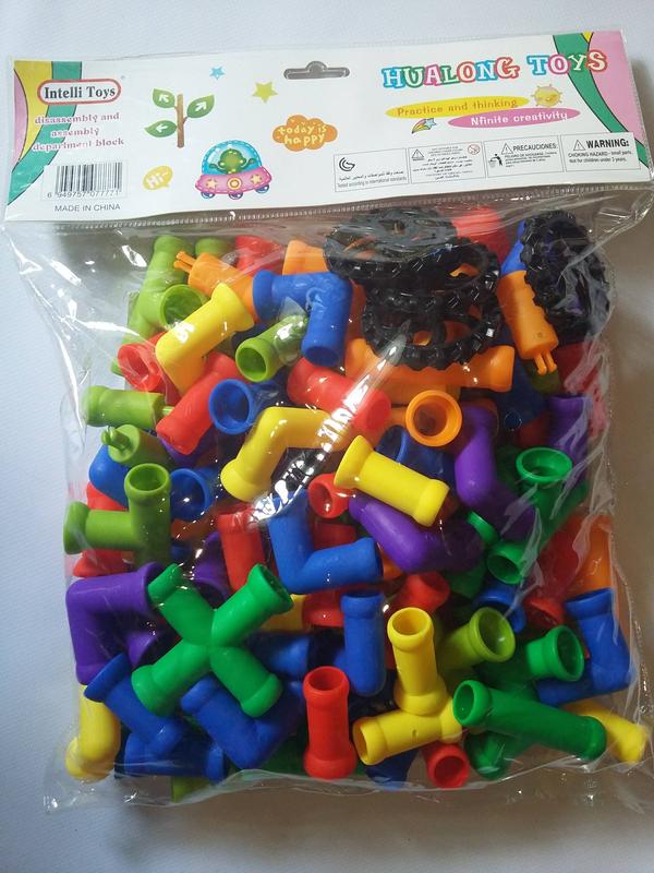 --Трубы - высота одного элемента 4,5см-7см, есть колеса, 100штук с колесами Возраст: 3+ Объемный развивающий конструктор включает в себя разноцветные и оригинальные по форме детали. При помощи этого конструктора из экологически чистого и безопасного пластика, Ваш малыш сможет сконструировать настоящие шедевры. Фигуры получатся яркими и объёмными, а возможности конструктора не иссякнут, ведь детали можно соединять разными способами, получая всё новые и новые варианты игрушек. Развивает мелкую моторику, комбинаторные способности, дают эмоциональное развитие и обогащение речи через высказывания, развитие образного и логическое мышления, увеличение словарного запаса.