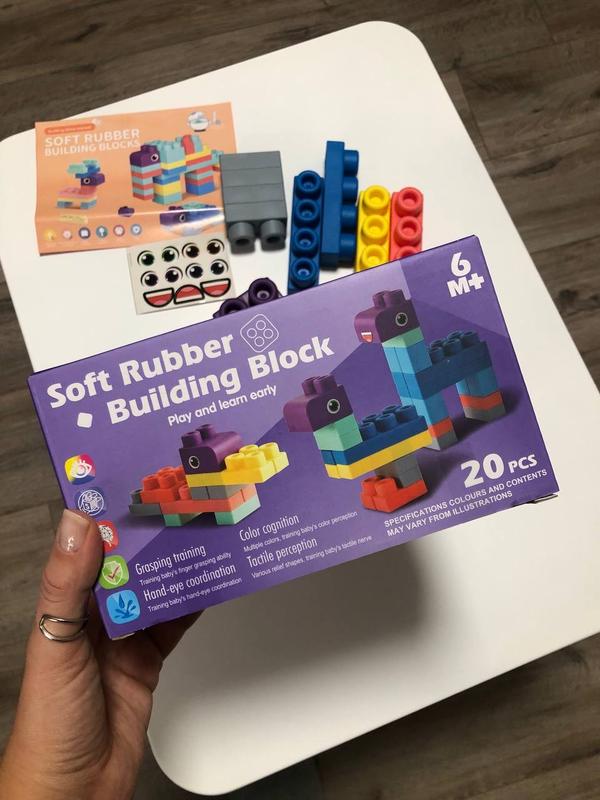 Цветной конструктор, который предназначен для самых маленьких детей. Включает 20 крупных деталей, которые отличаются по размеру, цвету и форме. Все элементы выполнены из плотной резины, так что их можно сгибать и даже попробовать на вкус. Детали не имеют острых углов, вполне безопасны для малышей и могут быть простерилизованы. Особенности: - безопасный конструктор для самых маленьких; - включает 20 элементов; - игровые детали выполнены из резины; - детали можно стерилизовать; - присутствуют тематические наклейки.