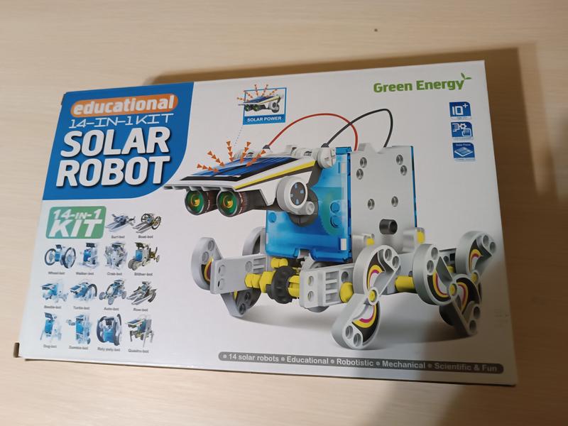 в наличии 1 штучка 14 в 1, робот, требует сборки. в наличии есть солнечная батарея, но много было отзывов что она капризна и не всегда работает. проверить невозможно, потому что все разобрано и упаковано. в любом случае игрушка интересна и от батареек должна работать. Электронный конструктор робот Sollar Robot Original 14 в 1 на солнечных батареях - конструктор с возможностью сборки 14 моделей, движущихся двигателями, питающимися от солнечных панелей. Электронный конструктор робот Solar Robot Original 14 в 1 на солнечных батареях - интересное занятие как для новичков, так и для опытных роботостроителей.
