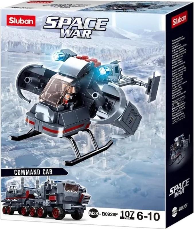 Конструктор "Space War": Военный вертолет SLUBAN M38-B0926F, 107 деталей. Артикул: M38-B0926F Пол Для мальчиков Размер упаковки 14,5 х 19 х 4,5 см Возраст 6+ • Страна происхождения: Китай • Тип упаковки:коробка Sluban