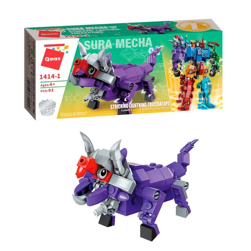 Детский конструктор qman 1414-1-6 трансформер (робот + динозавр) 93 дет фи