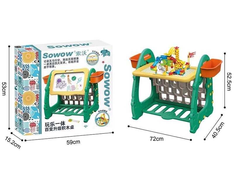 Столик с конструктором (s 075) доска, маркеры, стеллаж, конструктор с шариками