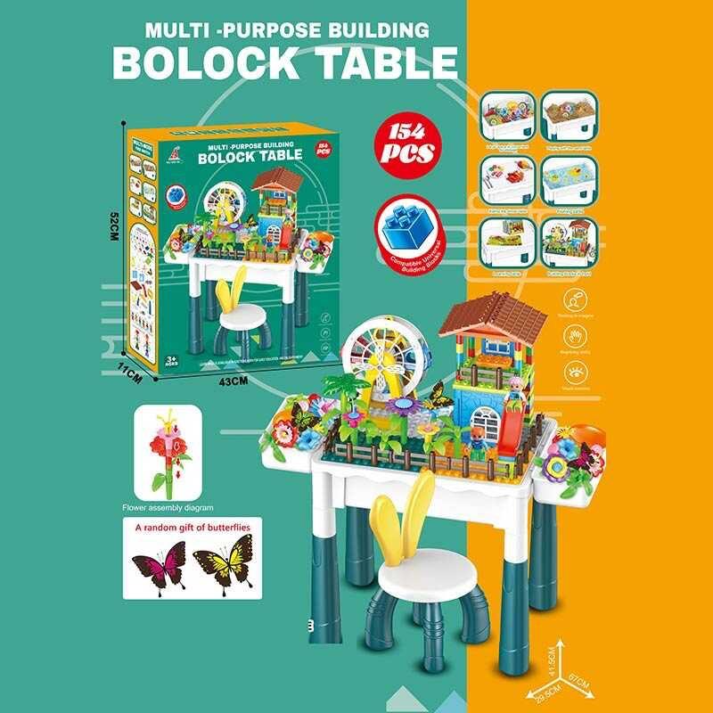 Столик с конструктором (1899-1 b) высота 42 см, 154 элемента, фигурки людей, стульчик