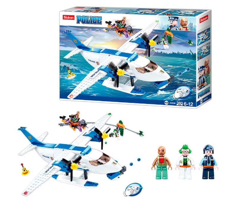 Конструктор полиция sluban m38-b0826 гидросамолет, фигурка, 380 дет.