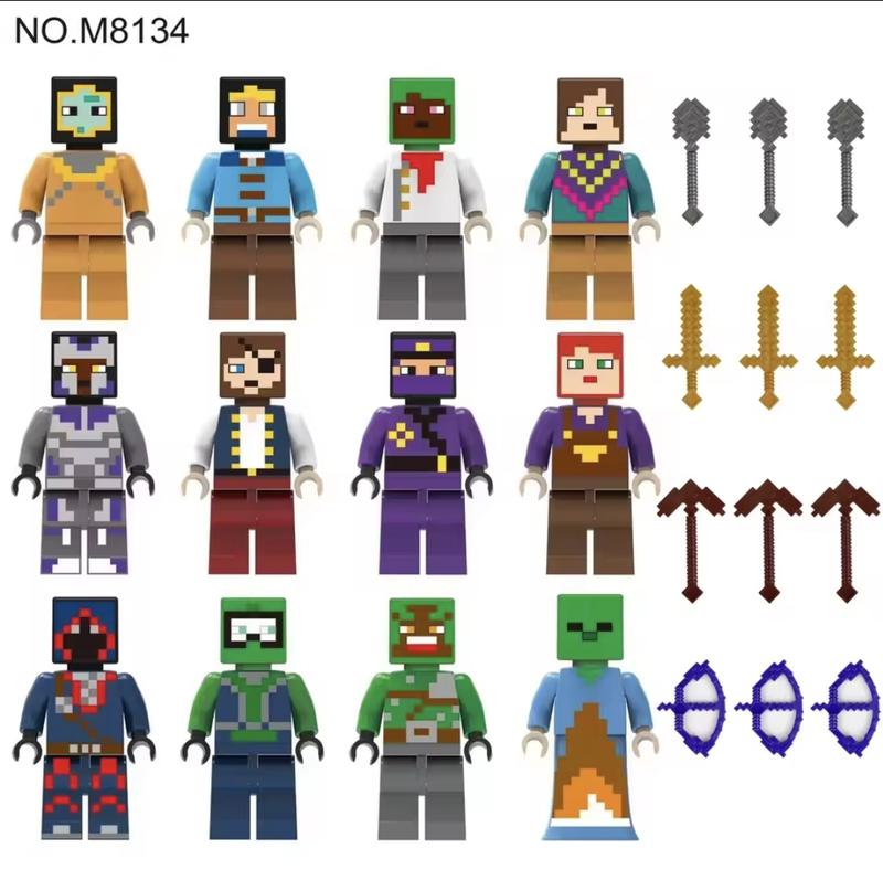 Набір м8134 майнкрафт minecraft 12 штук із зброєю та аксесуарами