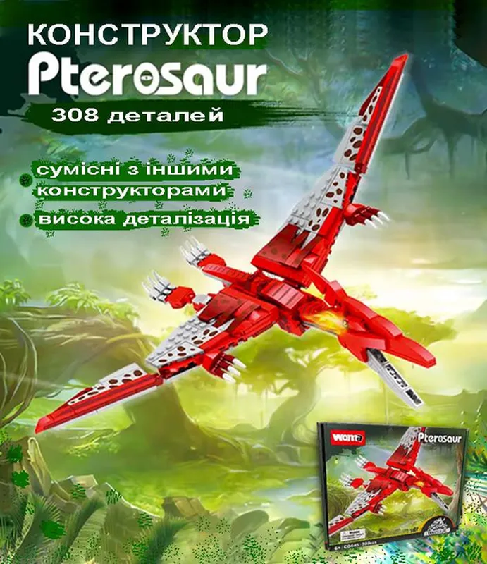Конструктор детский динозавр птеразавр pterosaur dinosaur на 308 деталей красный