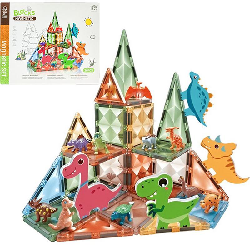 Конструктор магнитный Magnetic DIY 36 элементов Динозавры Разноцветный