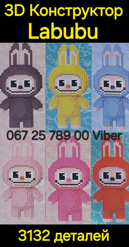 Конструктор 3D Лабубу Labubu Размер 33x15x10 см 3132 деталей