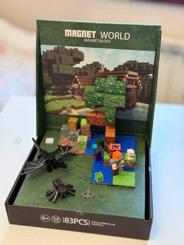 Магнитный 🧲 конструктор - это увлекательная игра, которая переносит мир Майнкрафт в реальность😉 Этот конструктор состоит из магнитных блоков, каждый из которых точно воспроизводит образ известных блоков из популярной видеоигры. 🎮 Он отлично подходит для развития пространственного мышления 🧐 и моторики рук 🖐️ у детей и взрослых. Благодаря своей экологичности и безопасности, этот конструктор является идеальным выбором для детей любого возраста. Он позволяет воплотить в жизнь различные сценарии и приключения из игры, стимулируя творческое мышление и фантазию. В результате игра с магнитным конструктором “My World Minecraft” станет увлекательным и познавательным занятием для всей семьи 🥰 📌В комплекті 83 деталі
