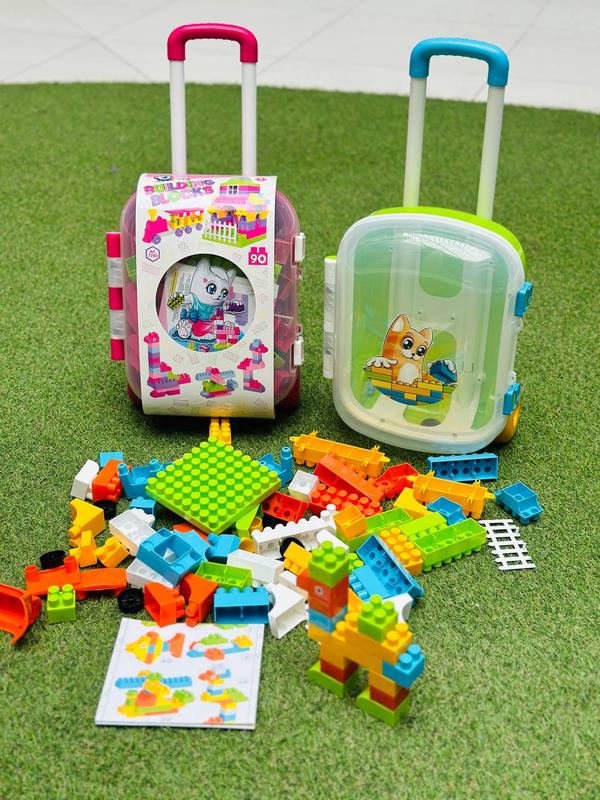Конструктор в чемодане В наборе 90 интересных разнообразных деталей Кирпичики со срезанными углами и арками для кораблей машинок или забавных животных, заборчики, окошки и двери для сказочных замков. Платформы с колесами – вообще находка. Можно построить автомобиль, поезд или самолет. Собранные рыбки и фламинго сразу "оживают", с ними деткам интереснее играть и, особенно, разговаривать. Цветная пошаговая инструкция является необходимостью, особенно когда ребенок знакомится с конструктором. Собирая модели согласно инструкции, малыши исследуют возможности конструктора и изучают азы построения базовых фигур. Удобная упаковка в чемодане с прозрачной крышкой непременно понравится малышам и родителям