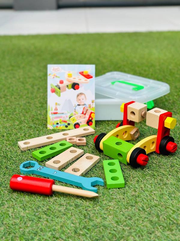 Набор деревянных инструментов и деталей конструктора в боксе 28 предмета⚙️ Развивает мышление фантазию мелкую моторику Изучайте инструменты вместе с набором юного конструктора Собирайте самолеты✈️ машинки, животных и собственные интересные истории Настоящее дерево 🪵 это всегда более приятные тактильные ощущения сделаны из экологически чистого материала Размер коробки: 20* 15*7 см