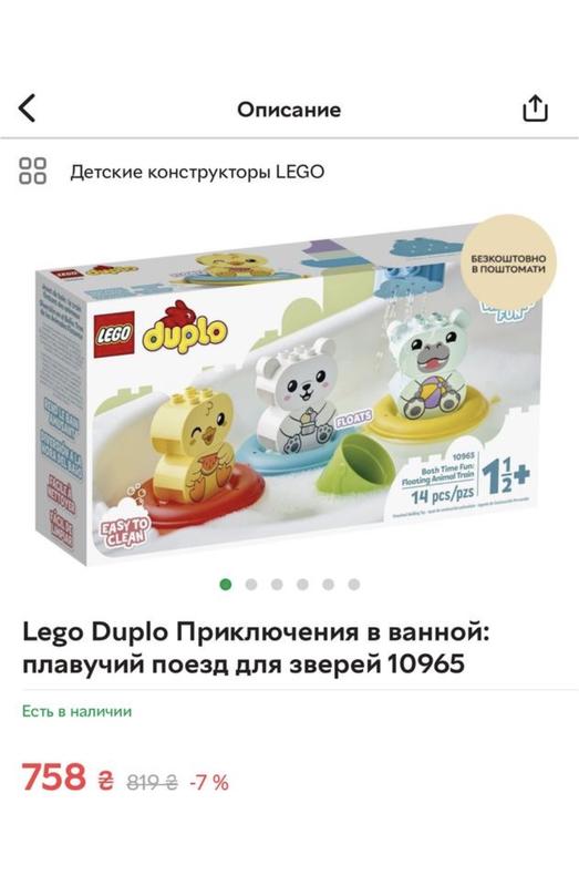 ✔️Замовлення «продавцю на карту» приймаю тільки після оплати. ✔️Накладний платіж по передоплаті 150грн. Повернення і обміну немає. Конструктор Лего Дупло для малечі 0+, плаваючий потяг Деталі великі і зроблені з якісного пластику. Дуже яскраві і цікаві) Всі елементи легко розбираються і просушуються для запобігання появи плісняви. Тепер купатися буде веселіше!) Стан : ідеал Всі деталі, що зображені - присутні. 🏷️Ціна: 600грн