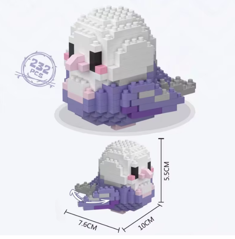 Конструктор "пуга корелла" 3d-модель птички из блоков! фиолетовый 232 шт