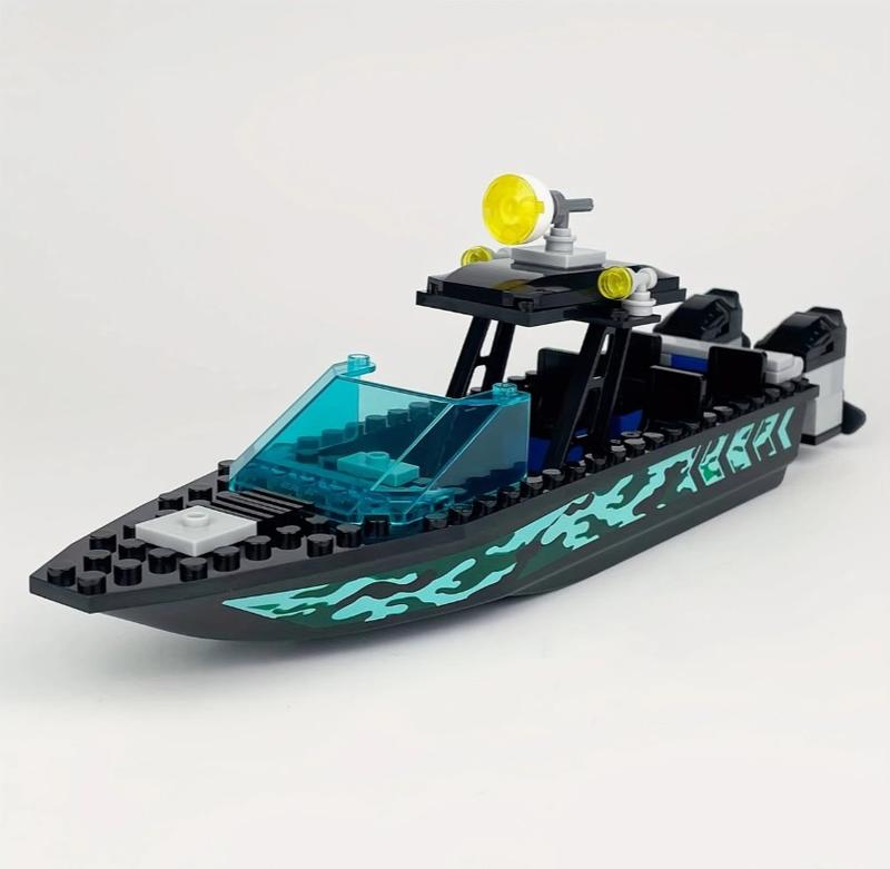 Конструктор лодка катер подставка для мини фигурок спецназ 89 деталей Без картонной коробки! Длина лодки - 26 см Выполнена из ABS пластика.