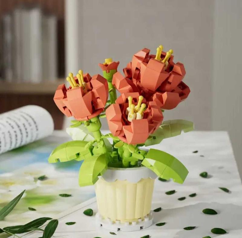 Нежный цветочный конструктор. С этим небольшим набором вы сможете создать хорошенький горшок с цветами. Готовое изделие - 10 см в высоту